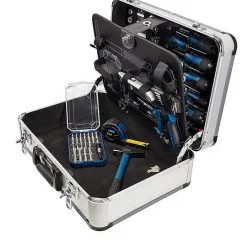 La malette avec l’ensemble d’outils à main TB150 Scheppach SCH5909306900 est une proposition pour les bricoleurs qui recherchent un riche ensemble d’outils et d’accessoires de base pour le travail à domicile et dans un atelier. L’ensemble contient 101 éléments. Tous les accessoires sont rangés dans une valise, ce qui rend l’ensemble du mini-atelier mobile, qui peut être emporté partout.