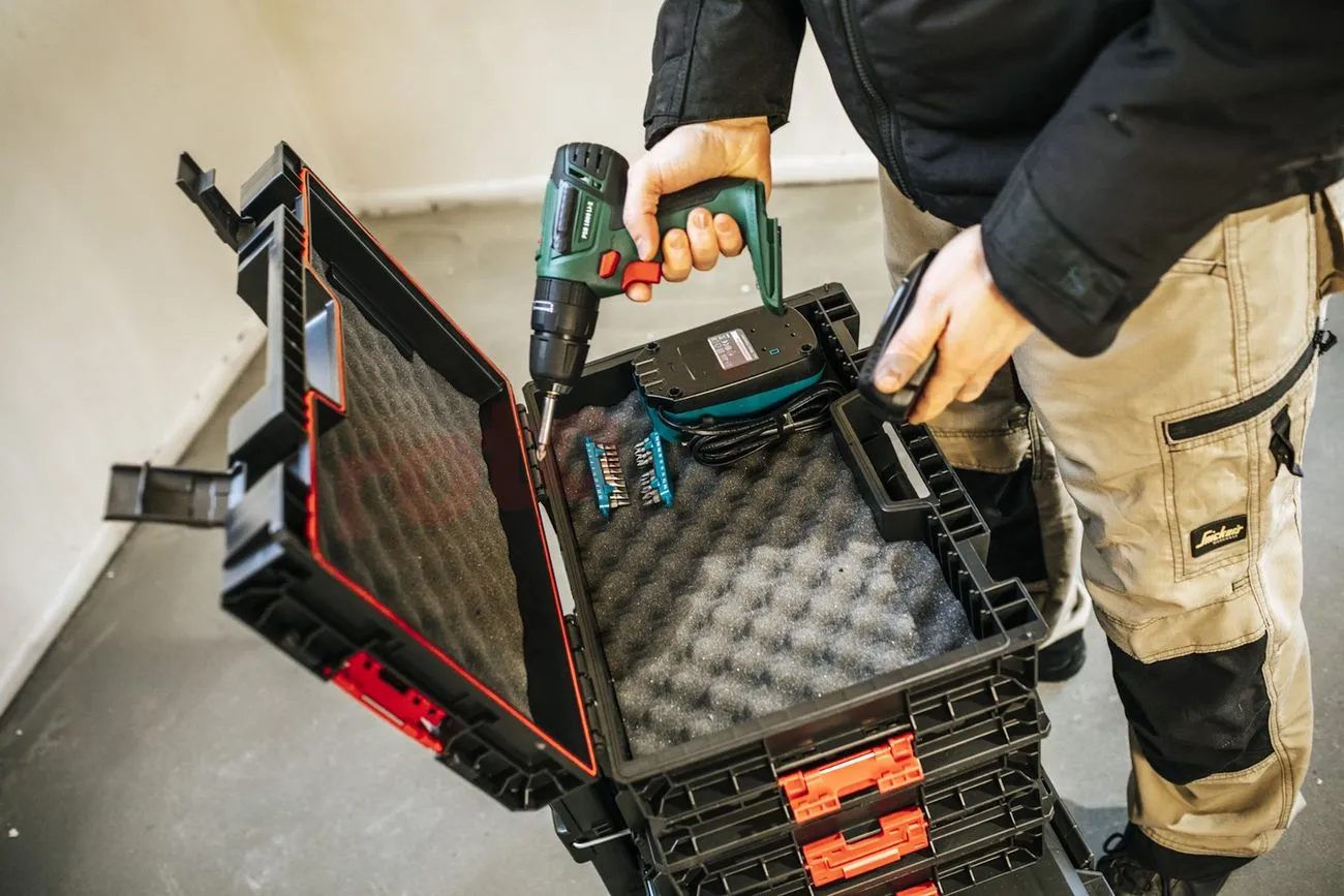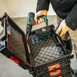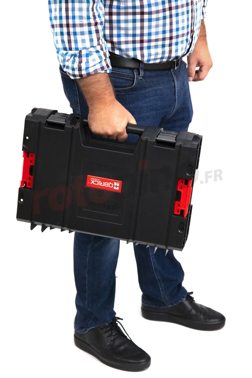 Valise pour les outils Toolcase PRO Toolcase Qbrick SKRQTCPROFCZAPG001 est une maslette spécialisée dans le stockage sûr et le transport pratique d’outils électriques individuels ou d’appareils de mesure laser. Conception compacte avec le côté le plus long de la taille de la plus petite boîte PRO500 vous permet de loger une machine spécifique, telle qu’une perceuse sans fil, une petite meuleuse d’angle, une perceuse ou un marteau perforateur SDS Plus ou, par exemple, un laser croisé, un télémètre et autres. Les parois intérieures de la valise sont équipées de mousse de forme universelle, qui presse correctement le contenu. Cela garantit un transport sûr sans que l’équipement ne heurte les murs ou d’autres éléments stockés. Deux clips en polyamide permettent une fermeture solide et très facile de la valise, et la conception brevetée des connecteurs latéraux vous permet de connecter la valise à une autre valise ou une boîte PRO500. Le tout peut être porté par la poignée d’une valise ou d’une boîte. Vous pouvez également attacher ces produits à la housse de la valise à roulettes Qbrick System ONE Cart, et à l’avenir à d’autres modèles de la gamme PRO. Tool Case PRO Protective Foam est un excellent complément aux valises système universelles de Qbrick.