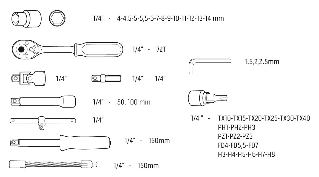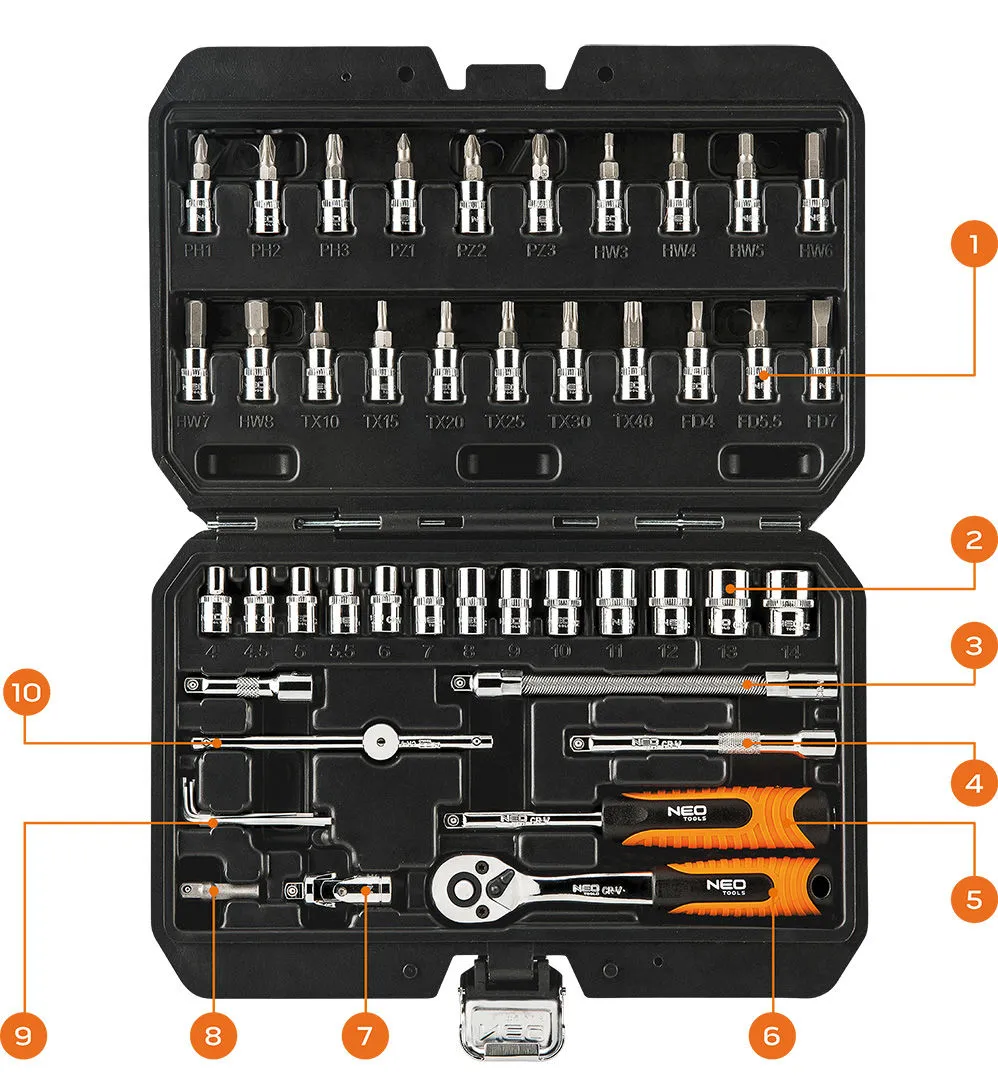 NEO Lot De 219 Cliquets Et Clés à Douilles De Haute Résistance 1/2