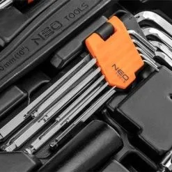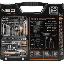 Le coffret d’outils à main Neo se compose de 143 éléments. L’ensemble comprend tous les outils à main nécessaires, clés, douilles, embouts de tournevis, etc. Le set 08-945 est une solution parfaite pour les personnes qui aiment avoir des outils utiles et pratiques en un seul endroit. Les produits solides sont fabriqués à partir de matériaux de haute qualité. Tout est dans une valise pratique.