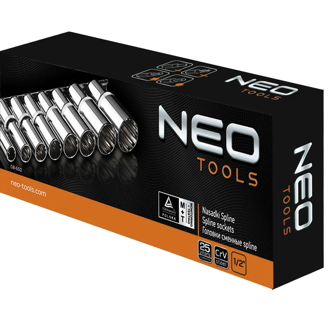 Douilles Spline longues 1/2″ 8 pièces Neo 08-650