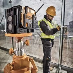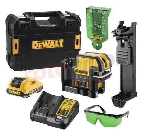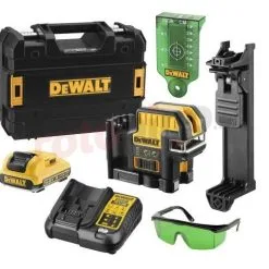 Niveau laser croix + point DCE0825D1G DeWALT est une version d’un niveau laser professionnel avec un faisceau vert. L’appareil affiche une ligne horizontale et verticale ou 5 points dirigés latéralement, de haut en bas et en avant. Lasers suspendus sur le pendule à mise à niveau automatique, déterminant le niveau vertical dans la plage de 150 degrés ou 5 points pour les porter à moins de 45m. De plus, le mode impulsion vous permet de travailler avec un détecteur qui augmente la portée. L’ensemble contient des éléments facilitant le suivi du faisceau, qui sont des lunettes et une plaque cible. La possibilité de montage sur trépieds avec filetage 1/4 ou 5/8 pouces et un support magnétique permet tout positionnement de l’appareil laser. Son boîtier robuste avec une étanchéité élevée et un verrouillage du mécanisme de nivellement est une garantie de résistance à l’eau, à la poussière et aux chutes d’une hauteur d’un mètre et demi. L’ensemble avec D1G est un boîtier de système TSTAK avec un appareil, un chargeur multi-tension, une batterie DeWALT XR 10.8V 2.0Ah, un support magnétique, des lunettes vertes et une cible de visée verte. Équipement professionnel pour une utilisation sur n’importe quel chantier de construction.