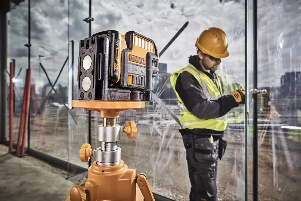 - Faisceau laser vert – une ligne du spectre plus clairement visible à l’œil humain facilite le travail dans des pièces lumineuses