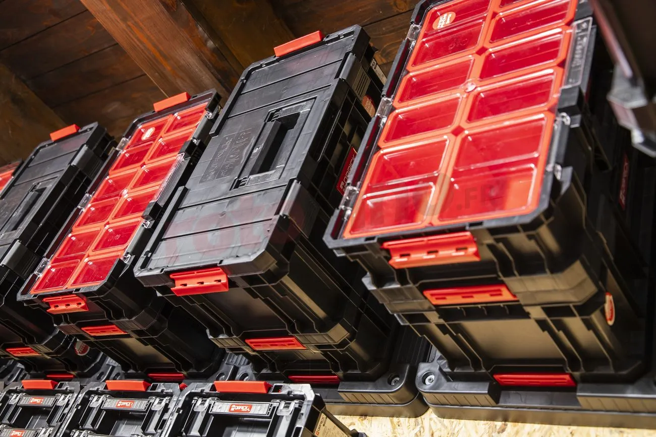 - Plate-forme Qbrick System Two pour une fixation pratique des caisses à outils de la série Two dans les voitures de chantier et dans les ateliers.