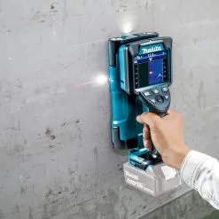 Le scanner mural sans fil Makita DWD181ZJ permet une détection précise d’objets dans le béton tels que : métal, câbles électriques, tuyaux en plastique, etc. Il est alimenté par des batteries Li-ion modernes à haut rendement sur une seule charge. Le scanner dispose d’un écran couleur de 4,1″, qui assure un affichage clair des données sur la position des objets. Il est possible de détecter jusqu’à 3 objets et de les affichés simultanément sur l’écran. Un avantage supplémentaire est le marqueur laser qui facilite le balayage dans l’axe horizontal et un panneau de commande pratique. Le scanner dispose de LED spéciales éclairant la zone de travail et est très résistant aux effets nocifs de la poussière et de l’humidité.