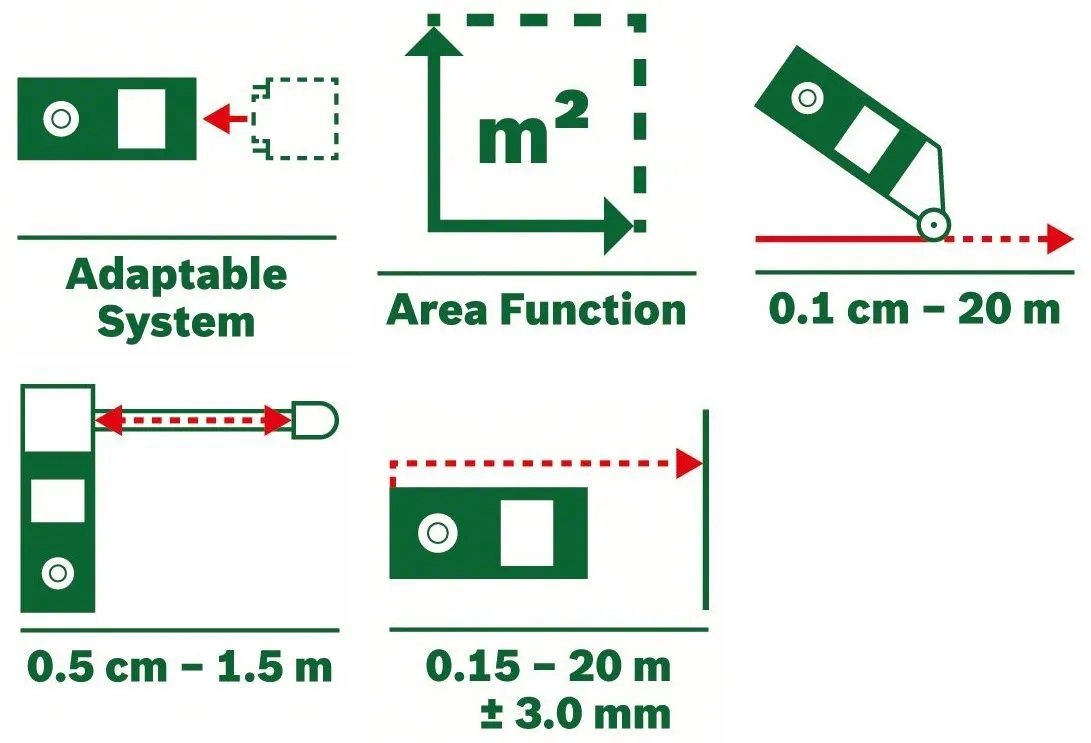 - Technologie laser pour mesurer des distances jusqu’à 20 m