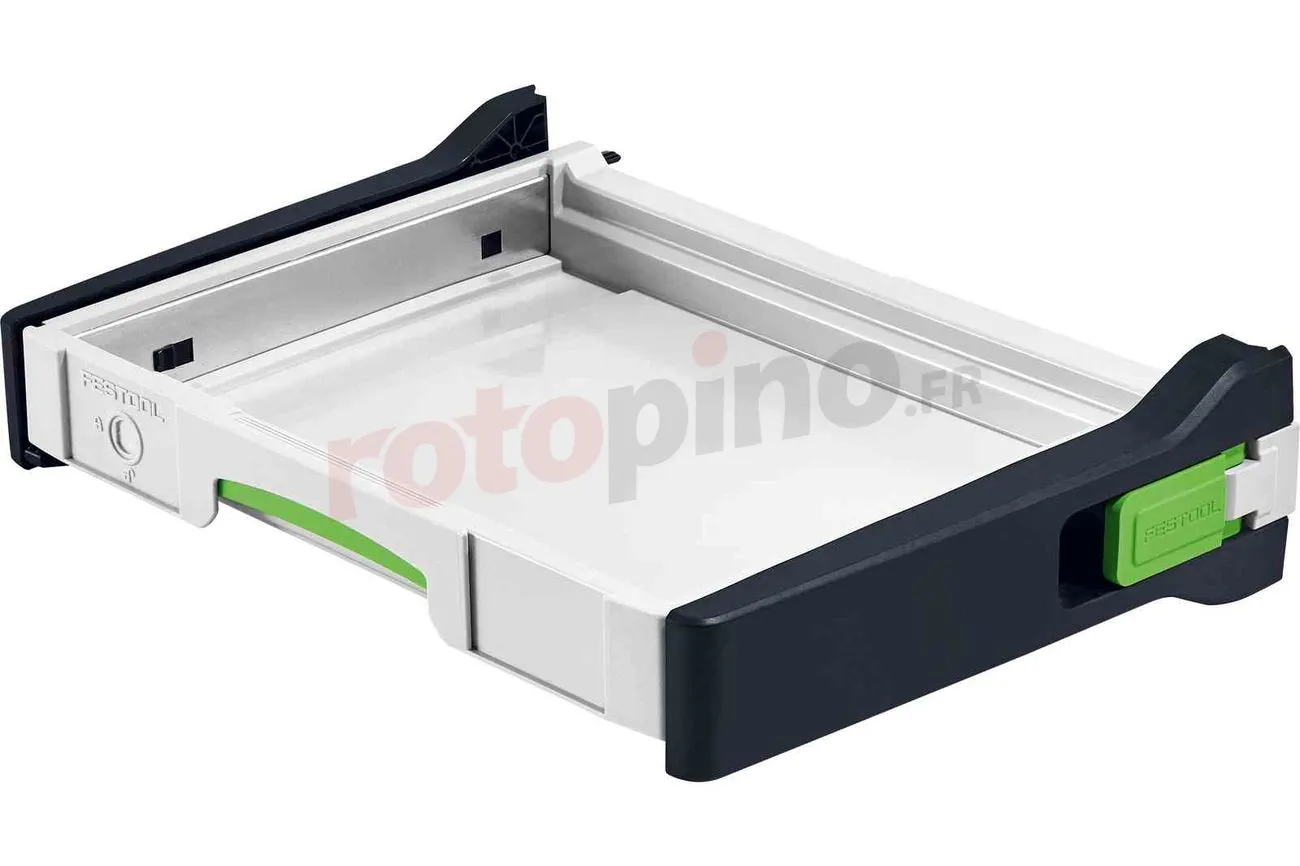 - Tiroir télescopique permettant d’ouvrir complètement le couvercle des Systainer, pour un accès rapide et simple aux machines, accessoires et outils à main