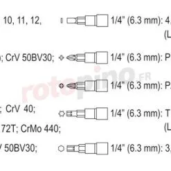 - 7 Torx morceaux: T8, T10, T15, T20, T25, T30, T40; AISI S2 / CrV50BV30