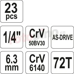 - Douilles courtes 1/4 « : 4, 5, 6, 7, 8, 9, 10, 12, 13 mm