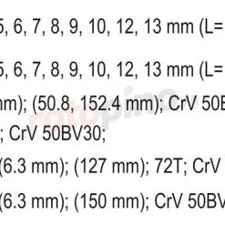 - Douilles longs 1/4 « : 4, 5, 6, 7, 8, 9, 10, 12, 13mm